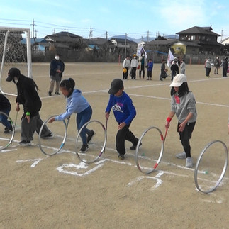 今回初種目です。指定したなわとびの種目と回数をこなしてからリレーしていく競技を作りました。複数人で跳ぶものを入れたり、大繩も入れて取り組みました。跳んだことがないような技もあったので、練習も頑張りました。